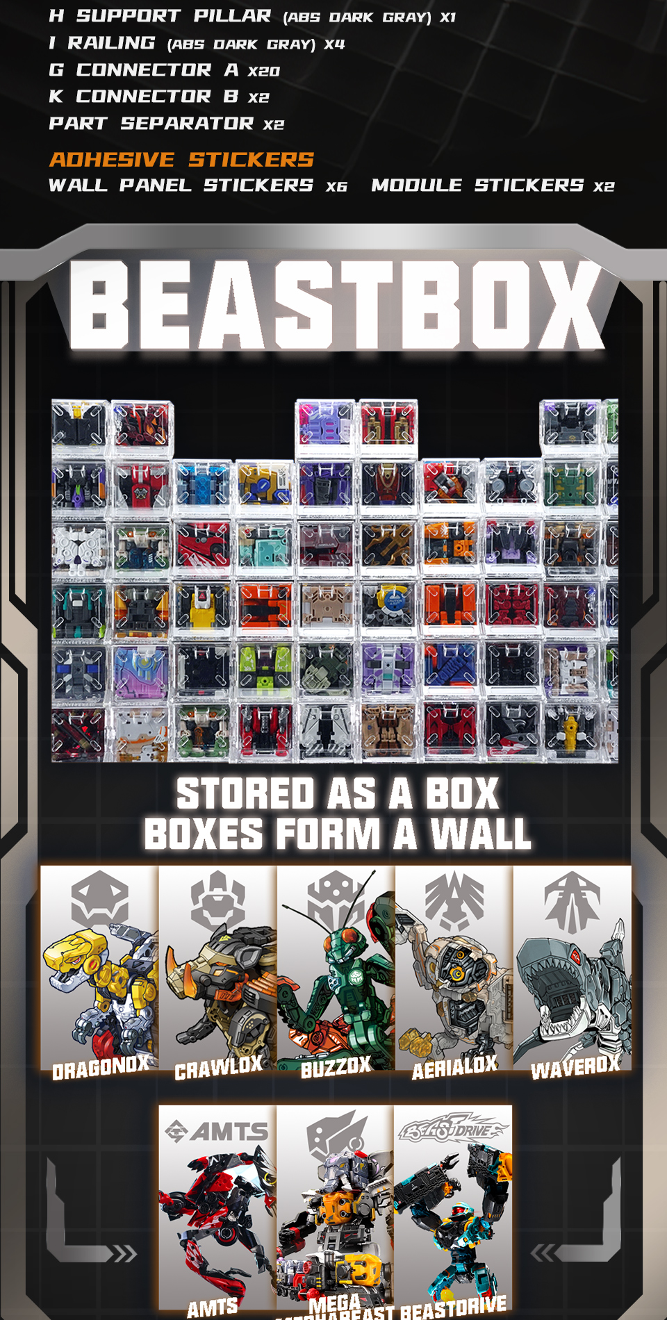 PLAMOISM — A modular DIY display system for your BeastBOX collection. Build custom hangars, add facilities, and create your perfect battle base. Easy to assemble, endlessly customizable.